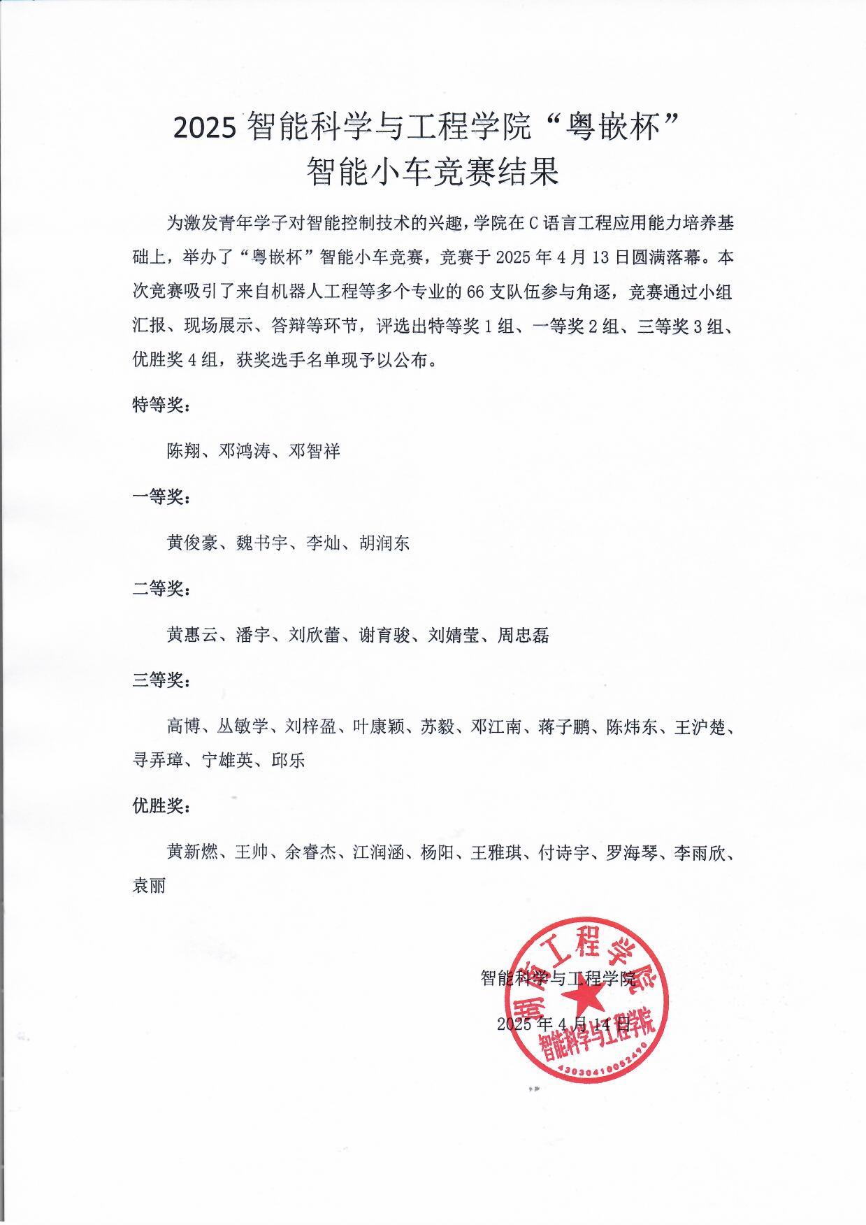 2025年公海gh555000aa线路检测“粤嵌杯”智能小车竞赛获奖名单