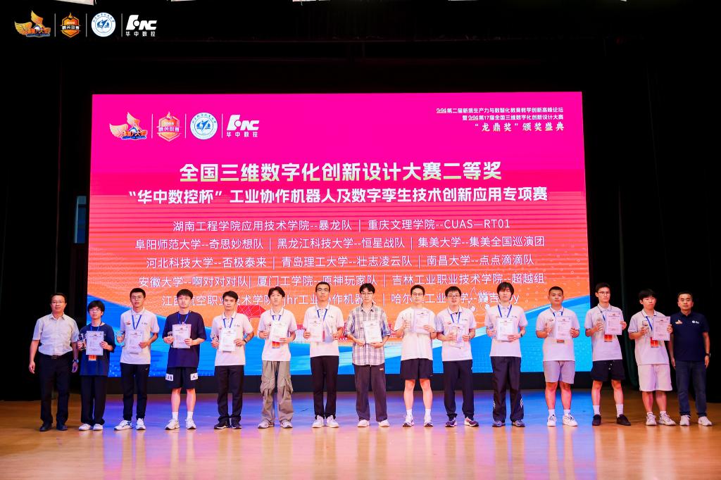 8月18-20日,第 17 届全国三维数字化创新设计大赛“华中数控杯”工业协作机器人及数字孪生技术创新应用专项赛总决赛在北京航空航天大学举行。历经校赛、省赛的激烈角逐,来自全国入围国赛的100多所高校145支参赛队伍,共计700余位参赛选手和指导老师,依靠深厚的理论基础、熟练的动手能力、卓越的创造能力、顽强的拼搏精神在年度总决赛的舞台上共同角逐“龙鼎大奖”。公司两支参赛队伍分别荣获全国一等奖、二等奖。