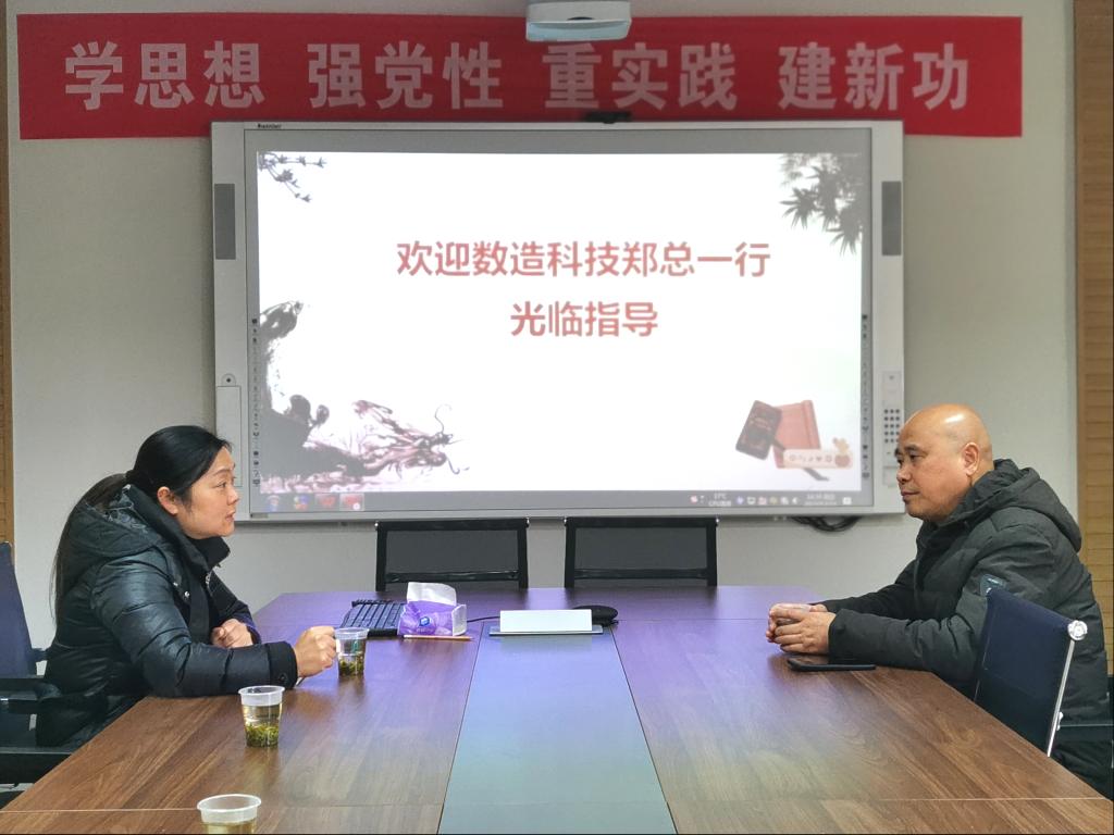 12月21日上午,数造科技(湖南)有限公司(下简称“数造湖南”)总经理郑振鸣一行来工程训练中心调研。中心主任胡慧、副主任胡晓东与郑总一行就产教融合机制创新与实践、科普基地建设等进行了交流。